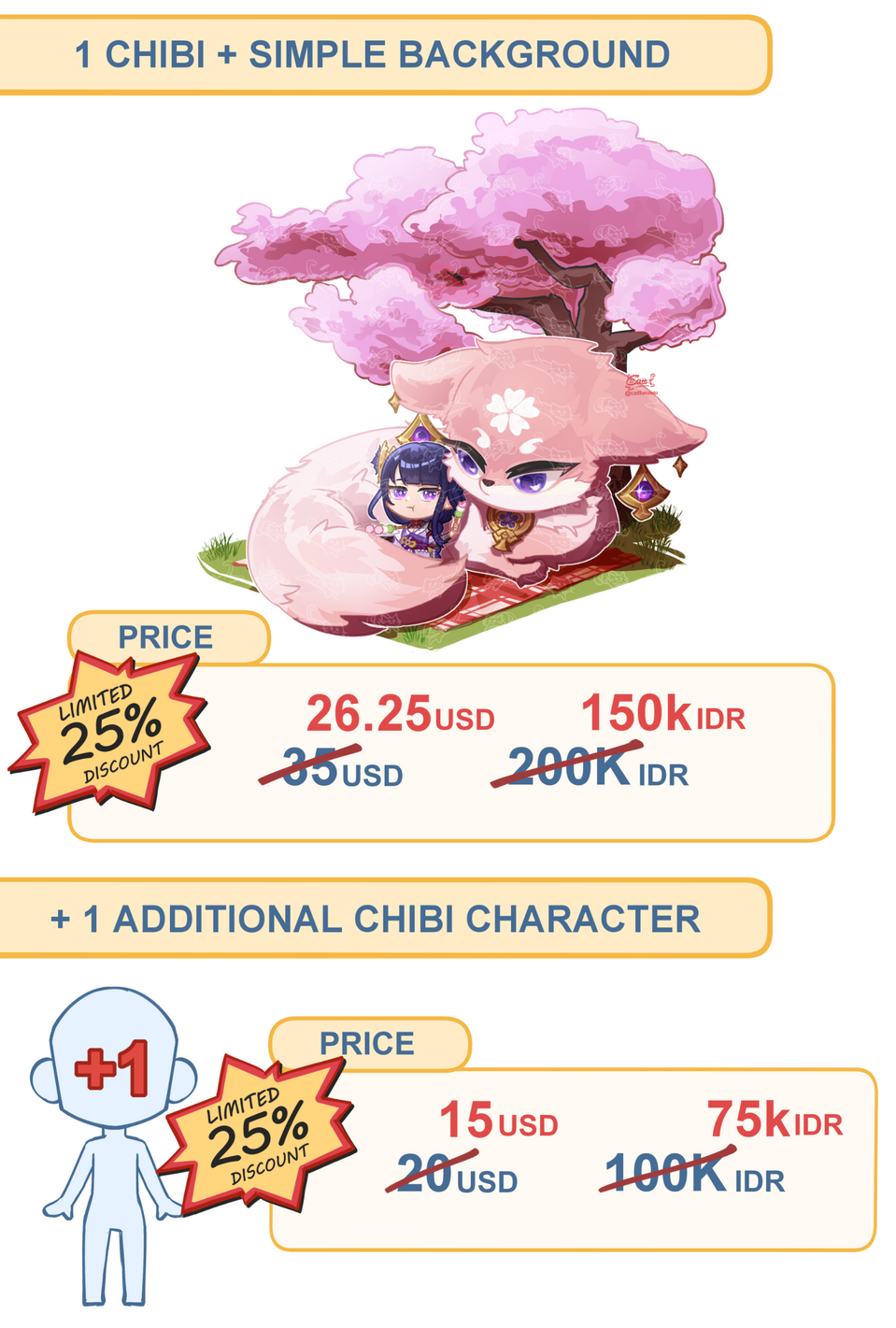 *Discounts are always available for the first few batches of a new type of commission. So do keep on a look out for future discounts!